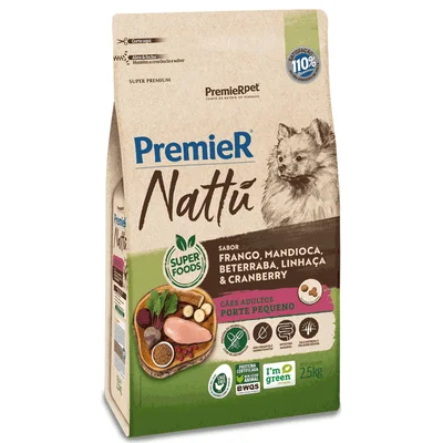 Ração Premier Nattu Cães Adultos Mandioca Pequeno Porte 2,5kg
